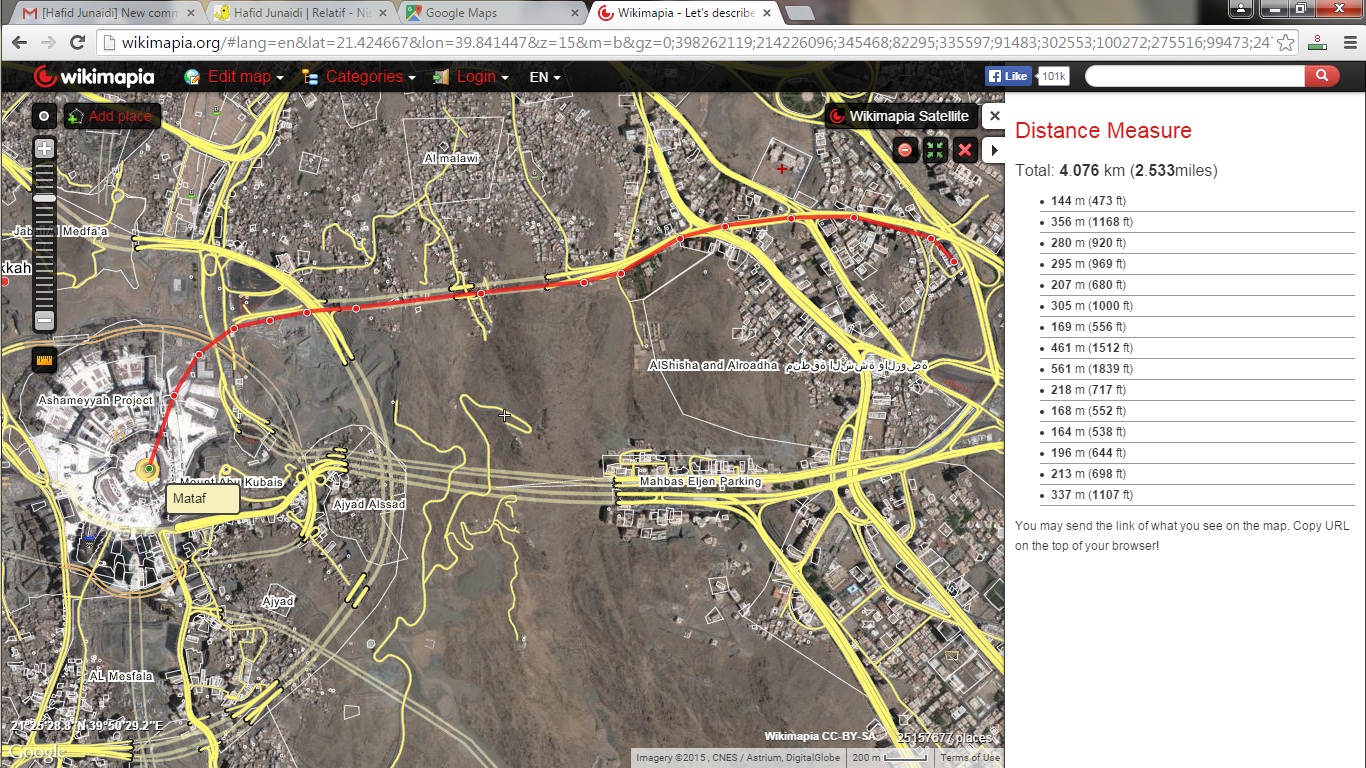 Jarak antara penginapan dengan masjidil haram (ka'bah) kurang lebi 4 km